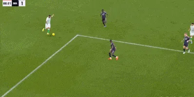 第90+7分鐘,貝蒂斯前場任意球機會,伊斯科將球開向禁區(qū),里亞德頭球攻門被盧寧托出橫梁。